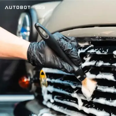 Vệ sinh ngoại thất: Dùng cọ trung bình cho logo, khe cửa, viền xe; cọ cứng cho bánh xe, khoang máy.